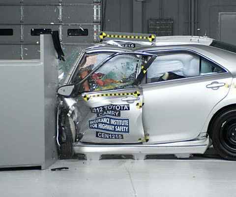 em modelos como Toyota Camry, Mercedes-Benz Classe C e Audi A4. No caso do modelo da marca japonesa, segundo o IIHS, a roda invadiu a cabine, o teto envergou e o volante saiu do eixo. BMW Série 3, Volkswagen Jetta e Hyundai Sonata obtiveram apenas um “regular”. Já o Ford Fusion recebeu nota “aceitável”, enquanto Honda Accord 2013 e Suzuki Kizashi foram aprovados com um “bom” (a melhor avaliação do teste). De acordo com o instituto, para se sair bem no novo teste o modelo deve ter colunas frontais, arco do teto e estrutura do motor reforçadas e maior número de airbags que tenham programação de disparo mais robusta.